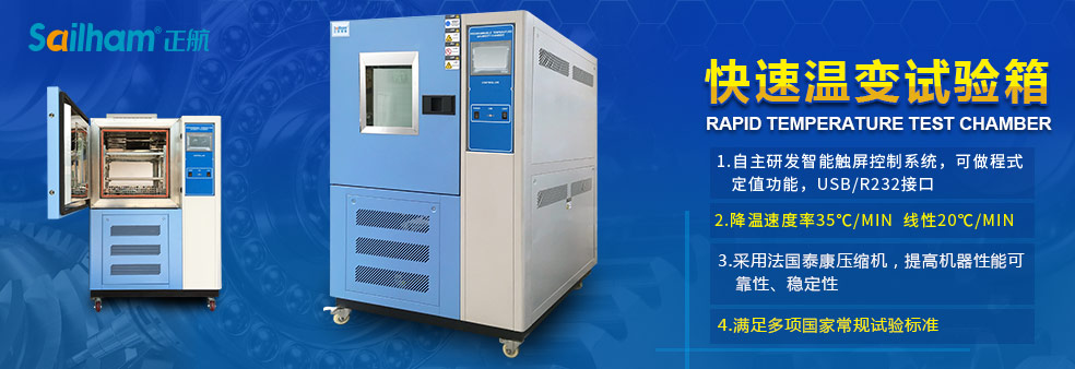 快速溫變高低溫試驗箱控制器具有多段程序編輯及溫度、濕度可做快速(OUICK)或斜率(SLOP)控制。內置式移動滑輪便于移動及擺放并具有強力定位螺絲固定位置。